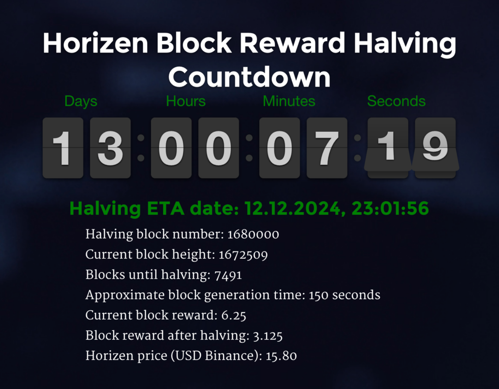 Предстоящий халвинг 12 декабря 2024 года станет последним в истории Horizen, так как проект переходит на новую токеномику в 2025 году. После сокращения вознаграждения за блок с 6.25 до 3.125 ZEN, проект планирует внедрить обновленную модель эмиссии в рамках перехода на Horizen 2.0.